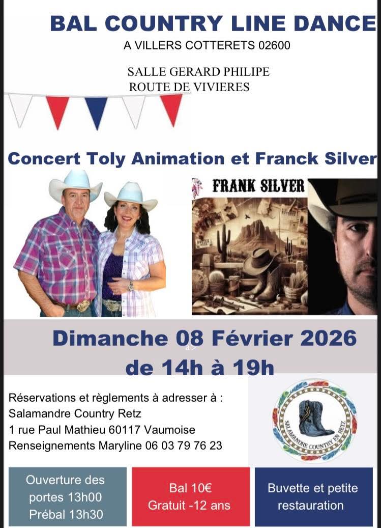 2026-02-08 Salamandre Country (02) Villers Cotterets - Affiche 2026-02-08 TOLY répertoire CHANSONS & DJ